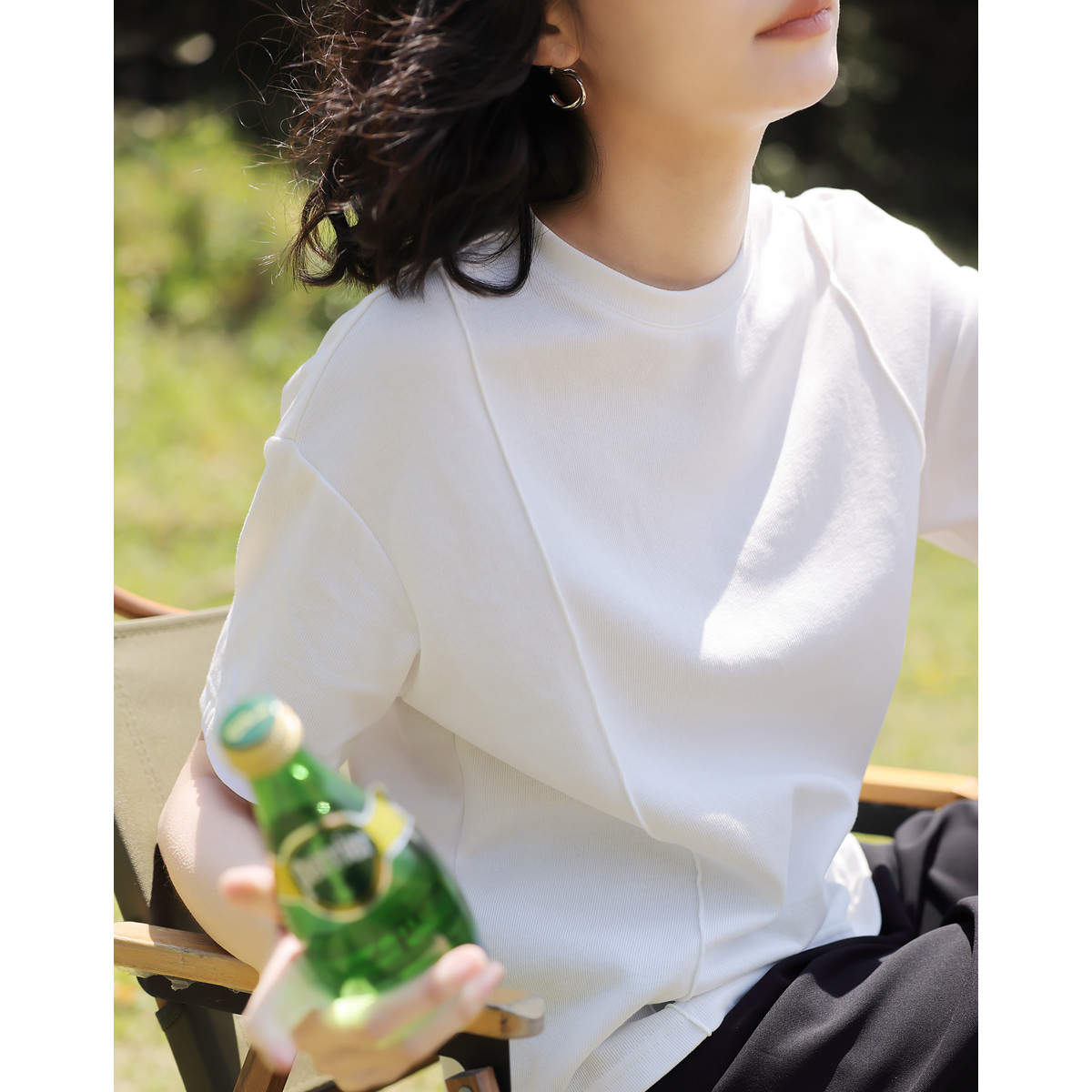 【柔软轮廓】夏季简约云朵棉小众分割线拼接短袖圆领遮肉女式t恤 510850
