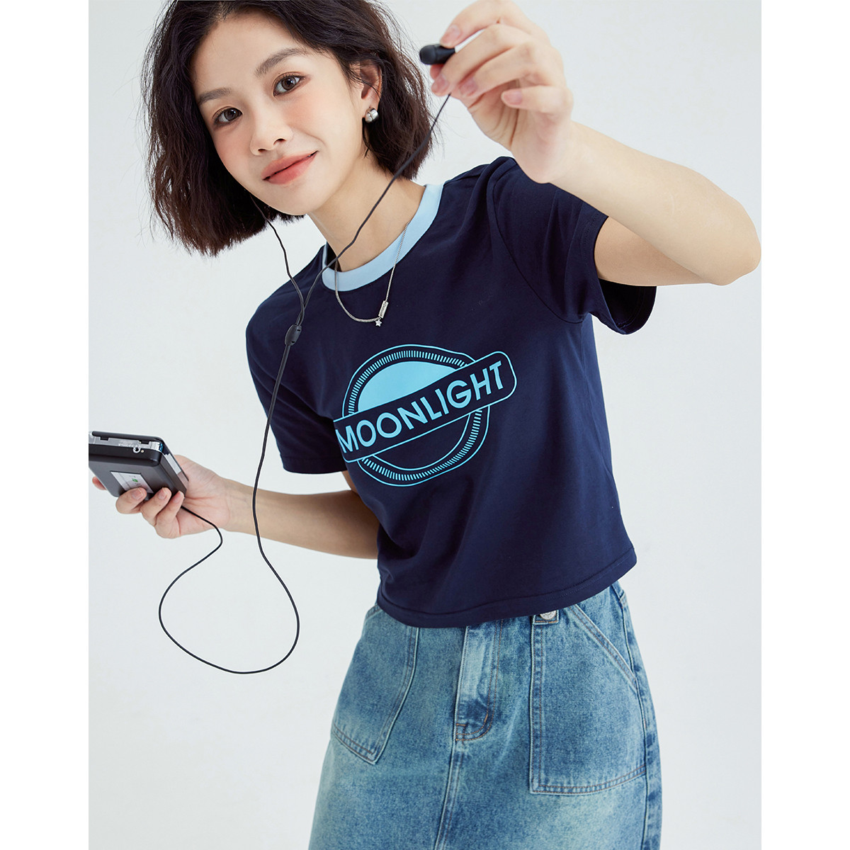 【潮酷风个性小短T】夏款辣妹风撞色印花设计感修身T 978050