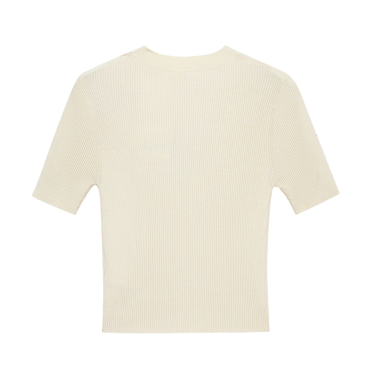 地素秋套头针织衫字母提花圆领短袖修身短上衣女 255051
