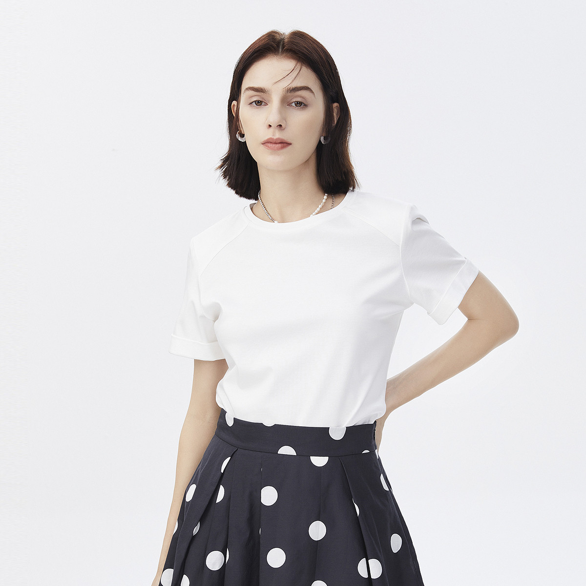 【莫代尔棉】501Cool女士方领凉感高弹短袖甜酷辣妹短款T 154437