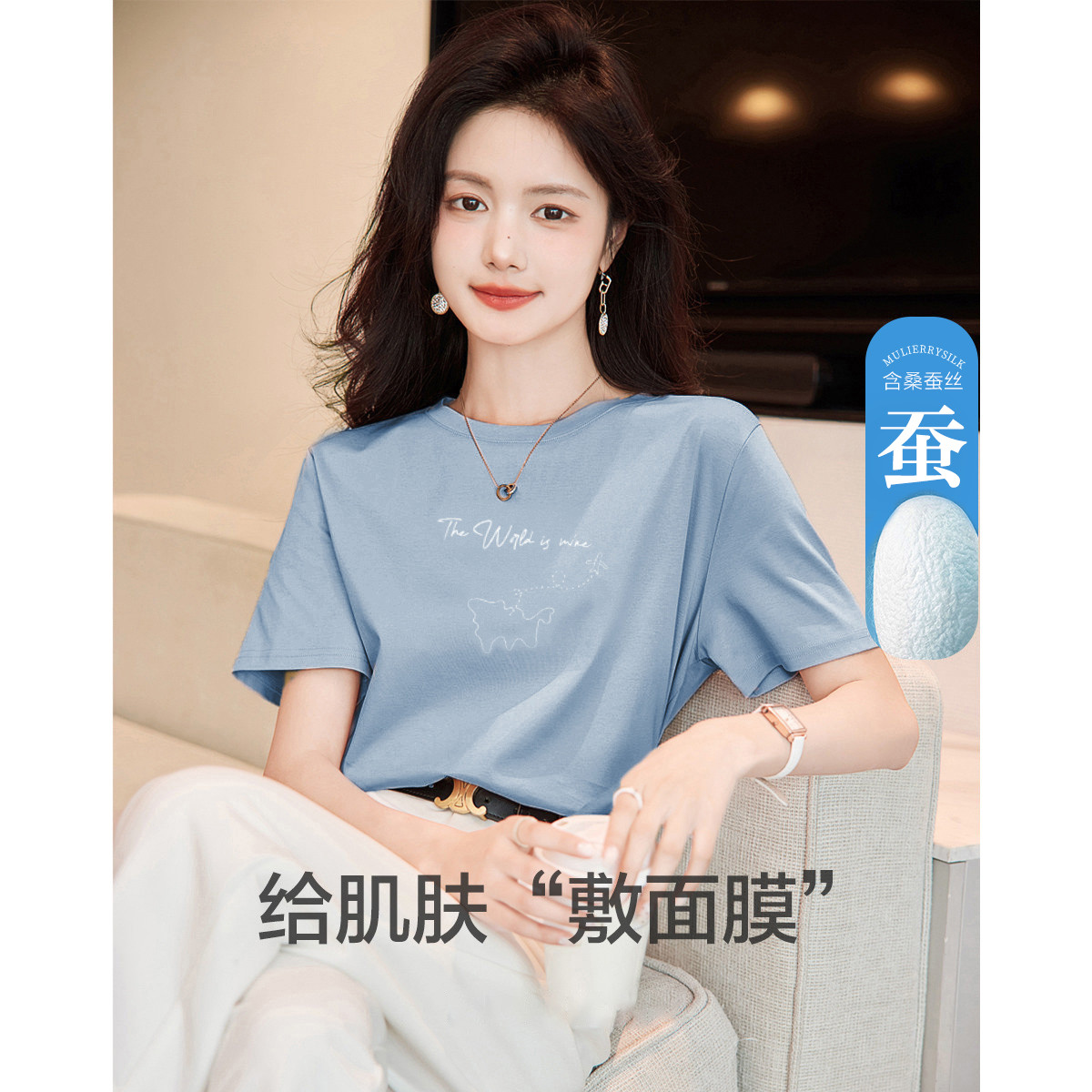 【含桑蚕丝180G丝光棉】夏季轻氧圆领字母印花小个子女式t恤 547457