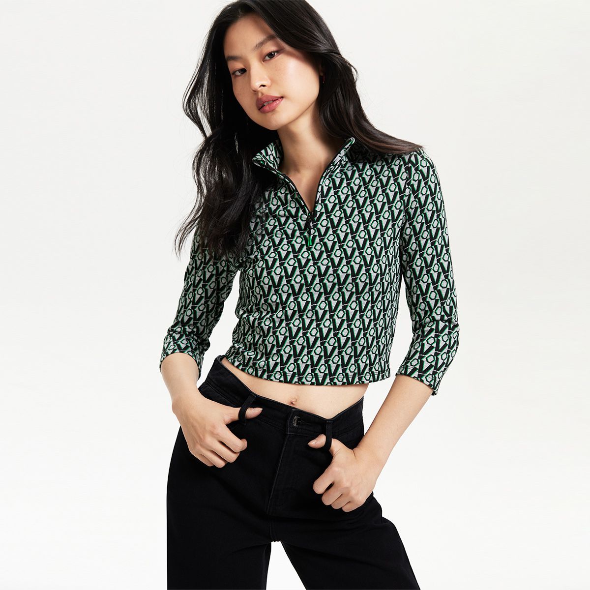 上衣女H版型短款立领字母印花七分袖复古 413329