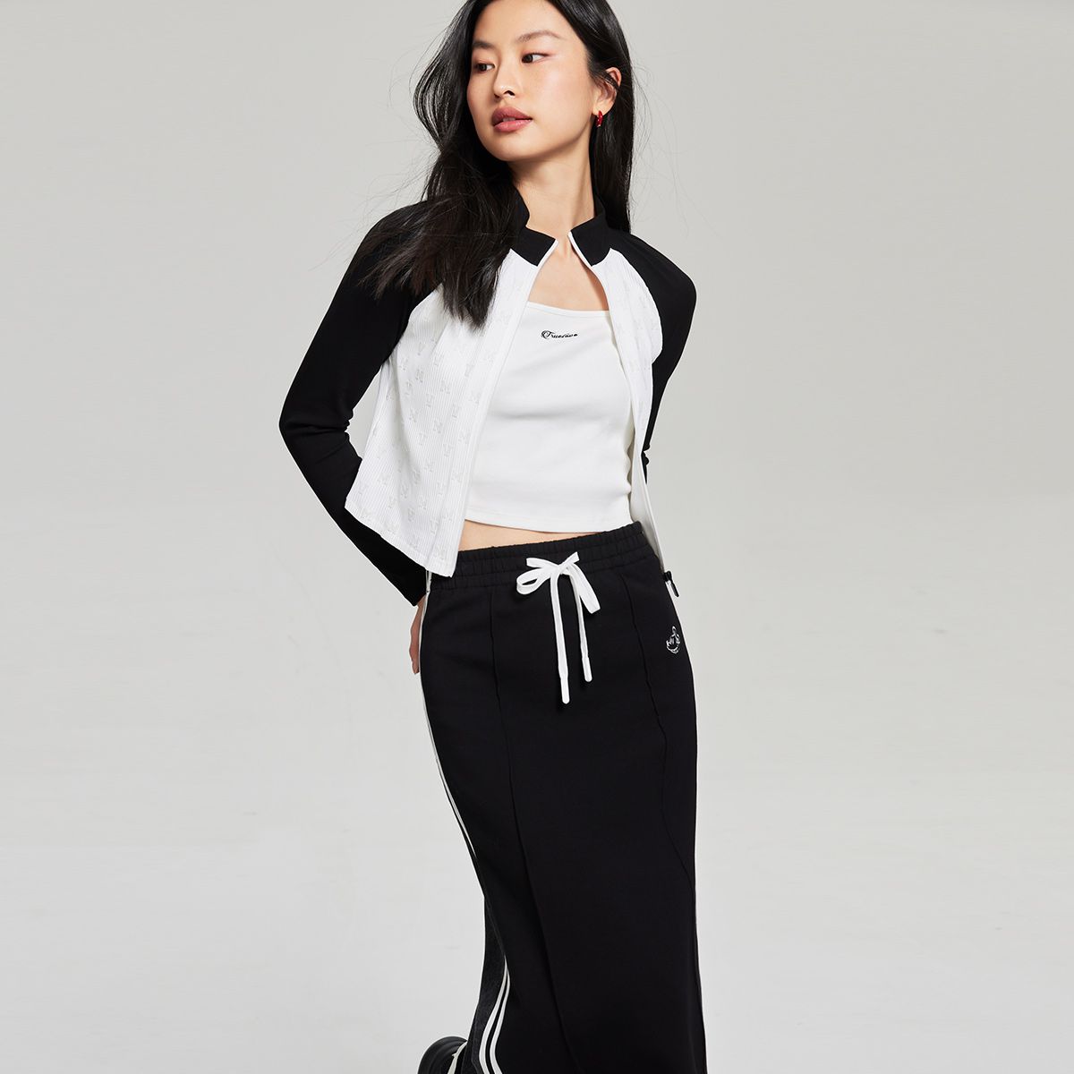 米子旗春秋款圆领女式T恤纯色宽松下摆开叉设计长袖上衣 544474