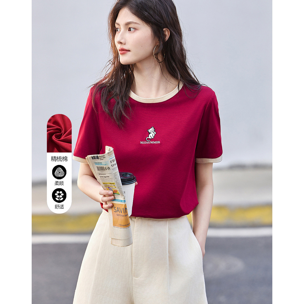 【猫咪控可入】夏阳光棉可爱字母绣花短袖撞色罗纹女式t恤 184577