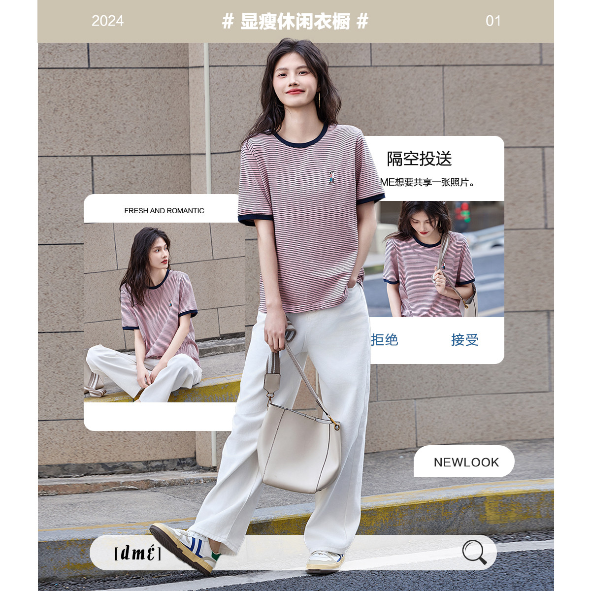 【复古情怀】夏季圆领条纹撞色短袖t恤女刺绣时髦舒适女式t恤 907969