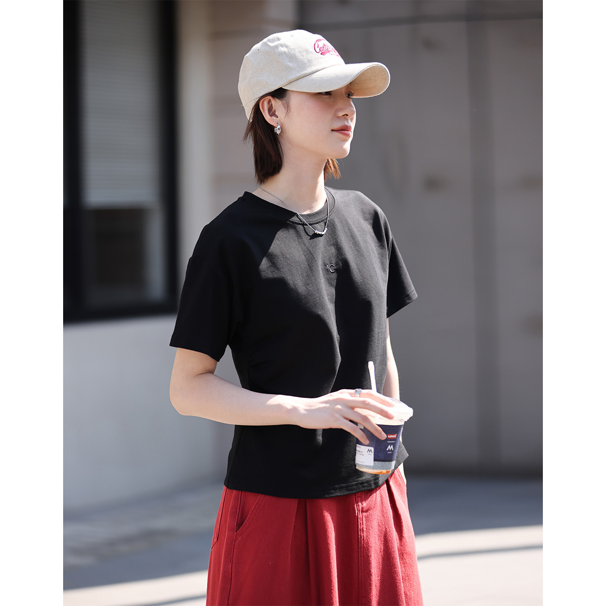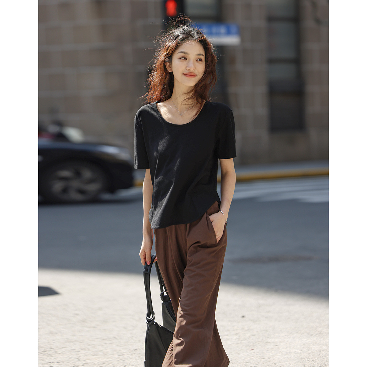 【基础款圆弧摆黑T恤】夏款百搭圆领亲肤舒适慵懒感上衣 609282