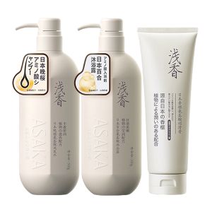 ASAKA/浅香氨基酸洗护三件套洗发水500g+沐浴露500g+顺滑膏260g