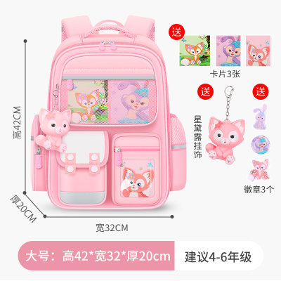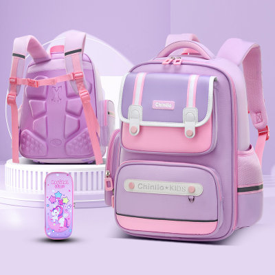 醇龙 减负护肩大容量耐磨小学生书包 0428 小号三件套粉色(适合1-3年级)