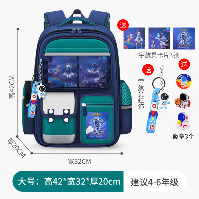 醇龙 新款护脊小学生书包 宝蓝绿 大号
