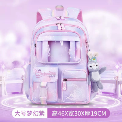 醇龙 超轻便护脊减负冰箱开门大容量书包 6777 (3-6年级)大号 梦幻紫