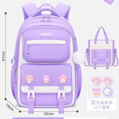 醇龙 减负护肩大容量耐磨小学生书包 0428 小号三件套紫色(适合1-3年级)