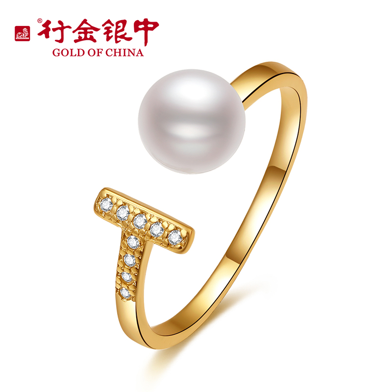 中银金行S925T字珍珠镶嵌戒指开口可调节戒指
