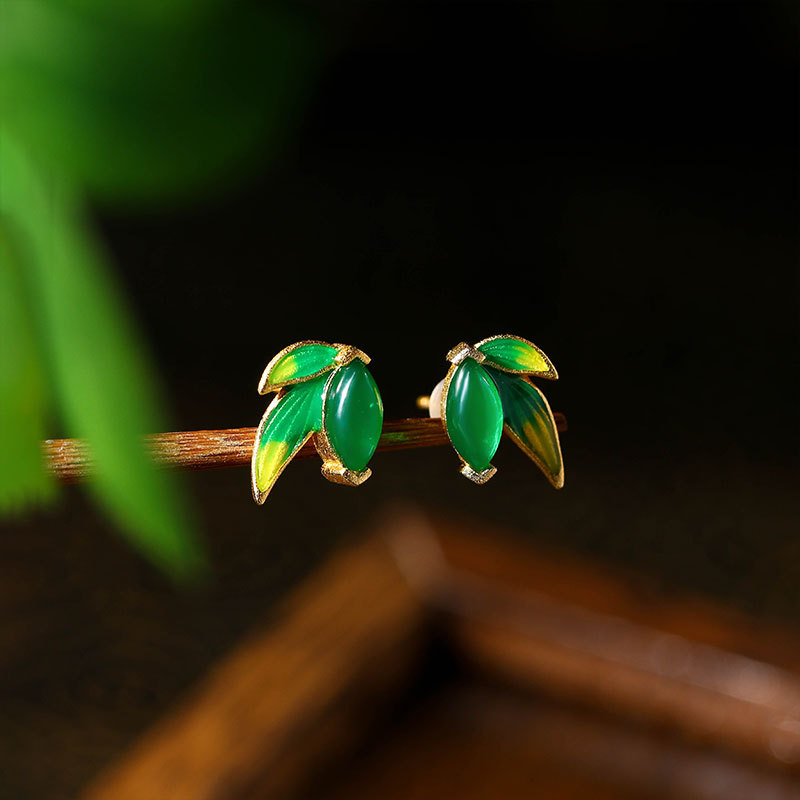 彤彤兔 新中式古风不易掉色绿色珐琅竹韵925银针耳钉古装汉服耳饰