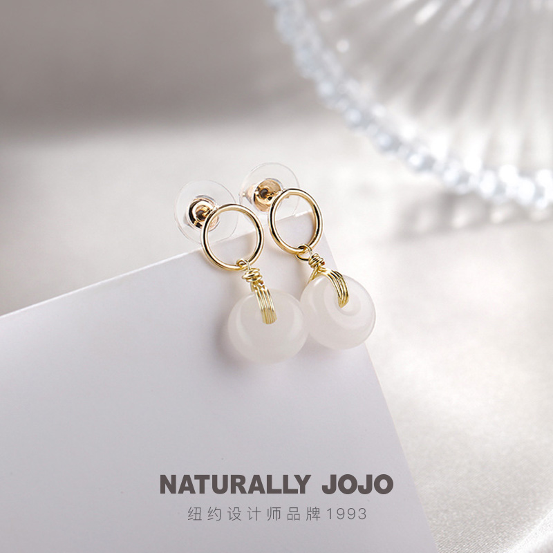 NATURALLY JOJO 女士S925银针小众轻奢玉石平安扣耳环女生耳饰饰品首饰
