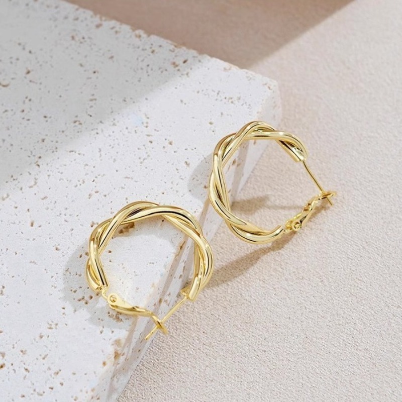 彤彤兔 S925银针港风设计感耳环女金色圆圈女复古耳圈大气高级感耳饰