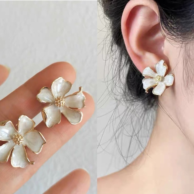 彤彤兔 S925银针花迹温柔风栀子花朵耳钉女小香风高级感滴釉耳饰夏季耳钉