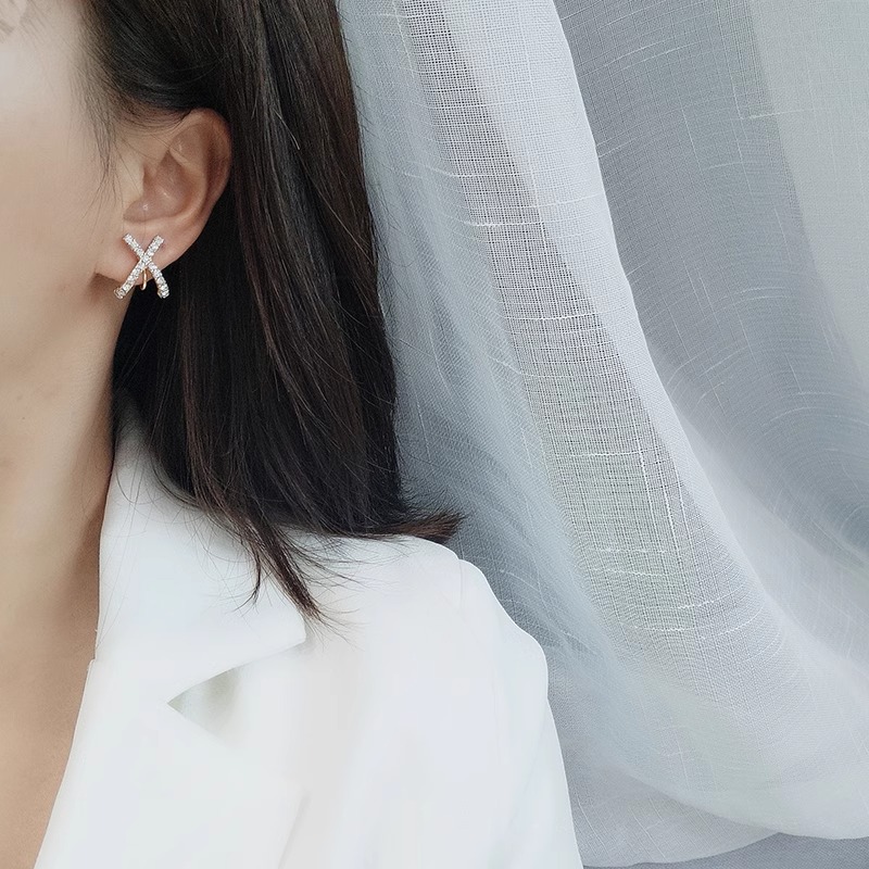 彤彤兔 S925银针交叉耳钉女小众高级感爆款耳环轻奢气质法式耳饰