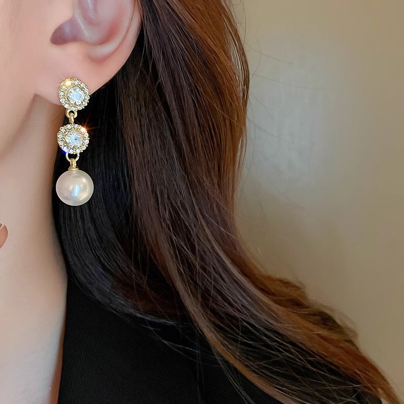 彤彤兔 S925银针镶钻圆形珍珠耳环女小众高级感轻奢耳坠韩国时尚个性耳饰