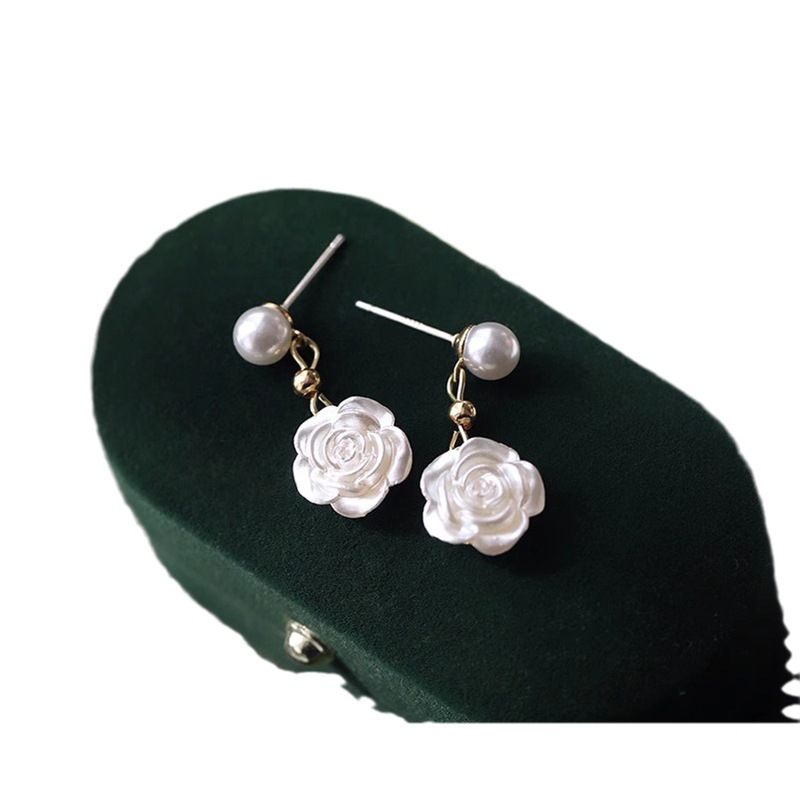 彤彤兔 S925银针夏季山茶花珍珠耳饰小众高级设计耳钉女洋气独特花朵耳环