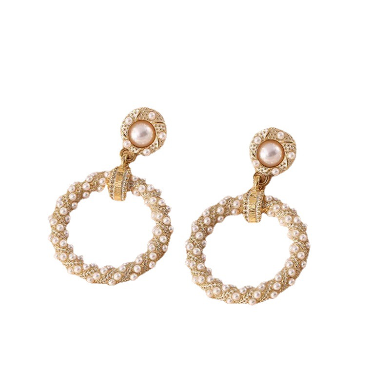 彤彤兔 S925银针珍珠耳钉法式复古港风高级设计感耳环圆形小香风耳饰