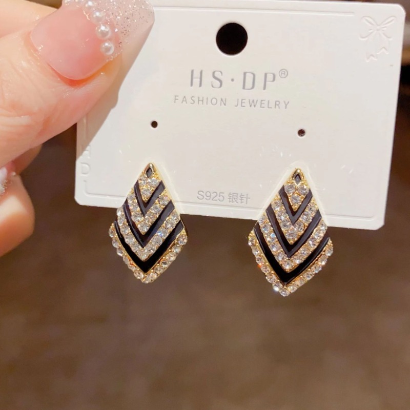 彤彤兔 S925银针时尚几何菱形条纹镶钻耳钉网红百搭款高级感气质优雅耳环