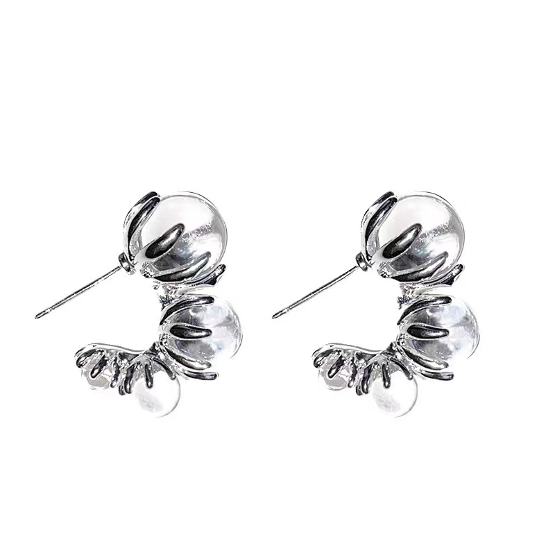 彤彤兔 S925银针冰透串珠独特耳环小众设计感高级耳钉简约气质冷淡风耳饰