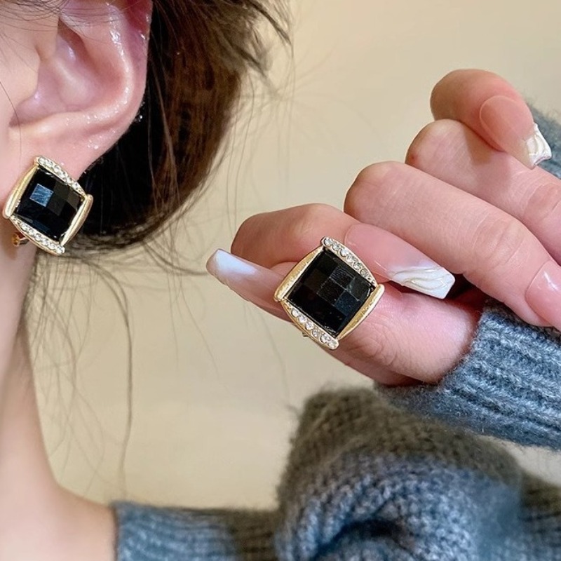 彤彤兔 S925银针黑色菱形耳钉网红小众设计感耳饰高级感简约百搭饰品