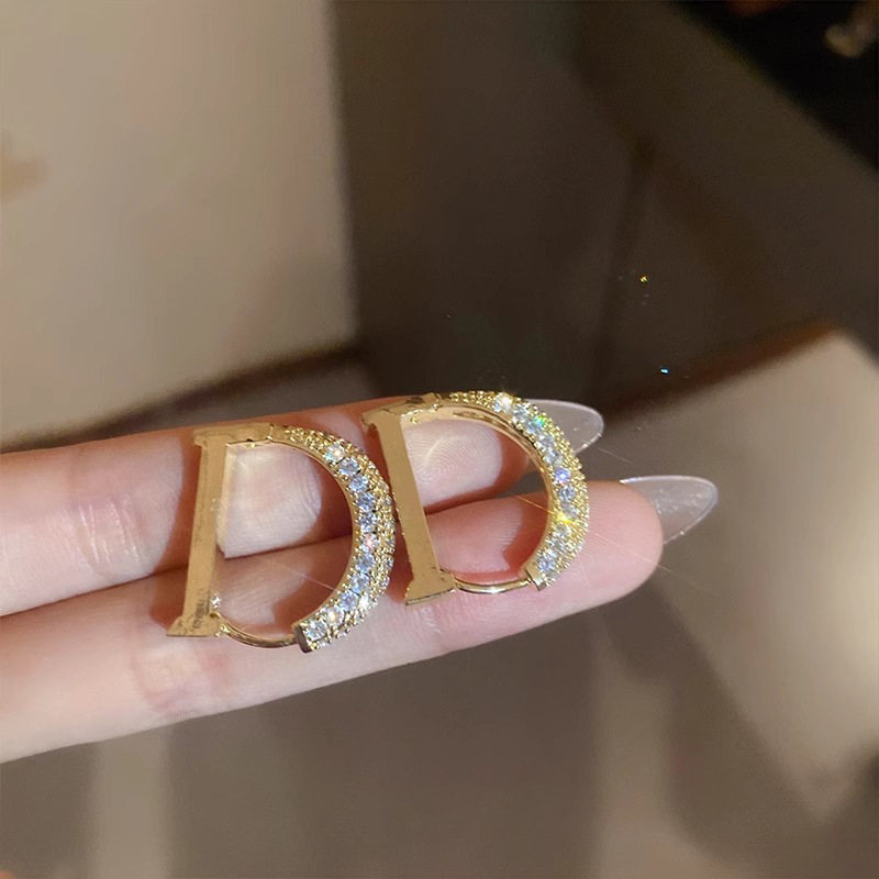 彤彤兔 D字金色高级感耳钉小众设计感网红耳环爆款耳圈时尚耳饰