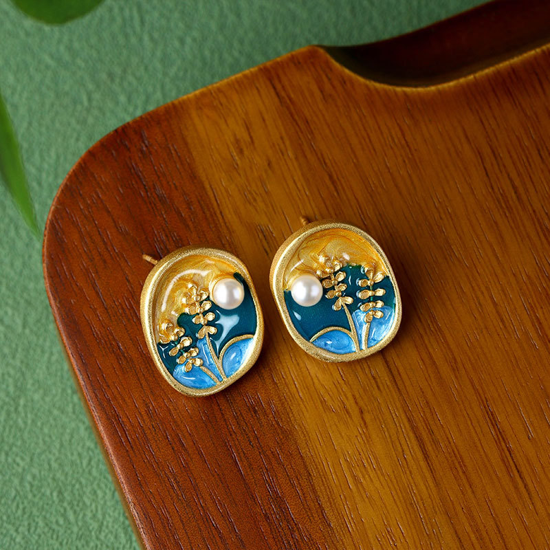 彤彤兔 新中式复古彩色创意油画麦穗耳环女珐琅滴油仿珍珠马面裙旗袍耳饰