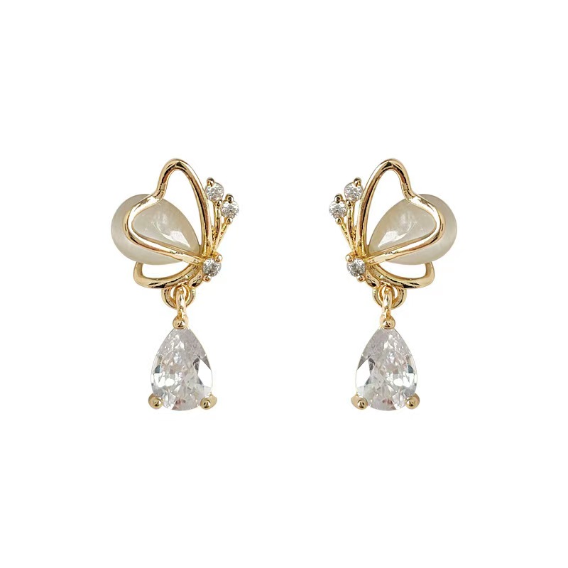 彤彤兔 s925银针猫眼石蝴蝶爱心款水滴锆石耳环女小众设计高级感气质耳钉