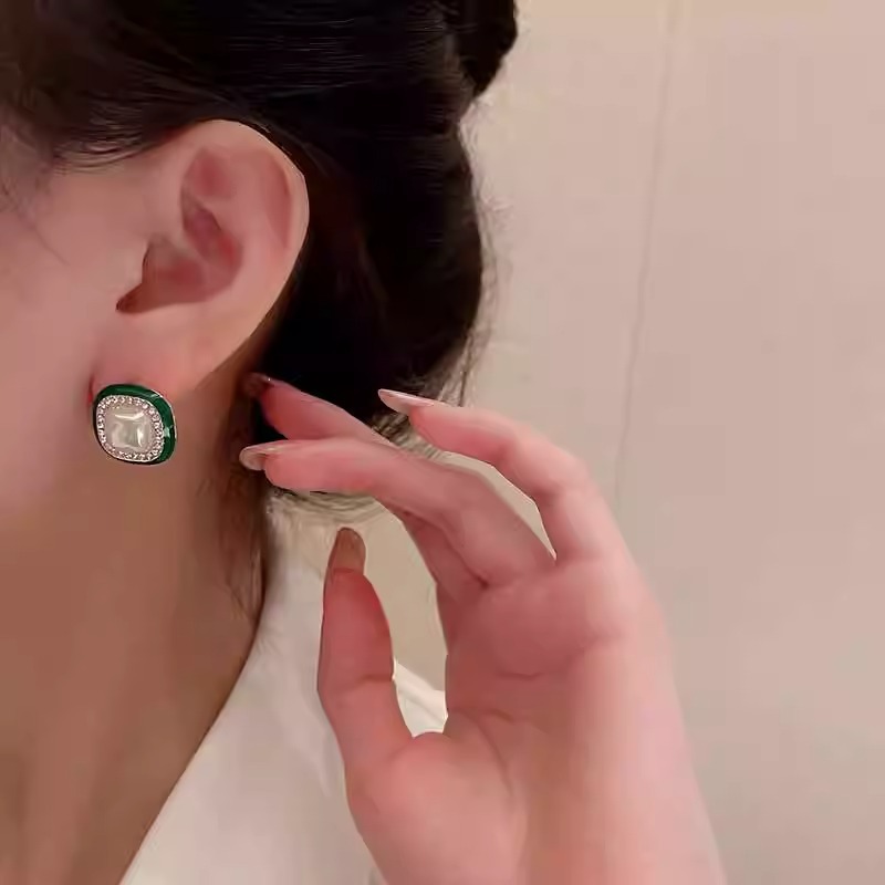 彤彤兔 S925银针方块珍珠耳钉女新款爆款复古轻奢气质耳饰小众高级感耳环