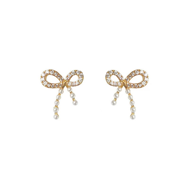 彤彤兔 S925银针时尚珍珠蝴蝶结耳钉潮女小众设计感高级耳饰耳环