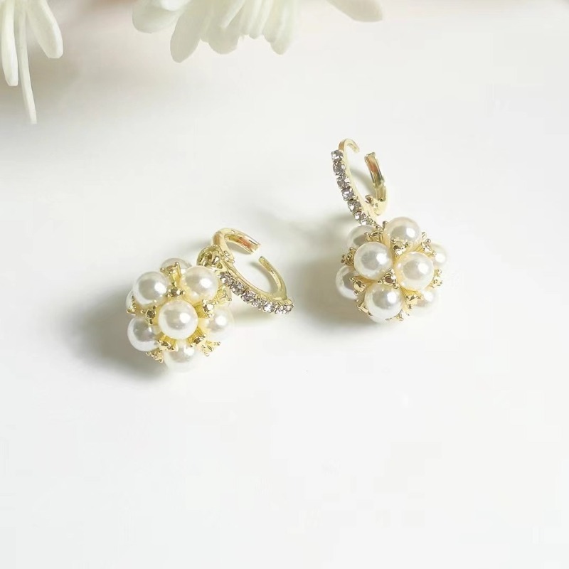 彤彤兔 甜美气质珍珠花团小耳圈耳环女潮独特设计感ins网红耳钉