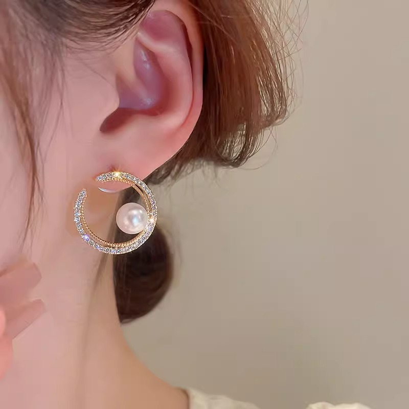 彤彤兔 S925银针法式气质温柔高级感珍珠耳环女优雅个性镶钻圆圈耳钉耳饰