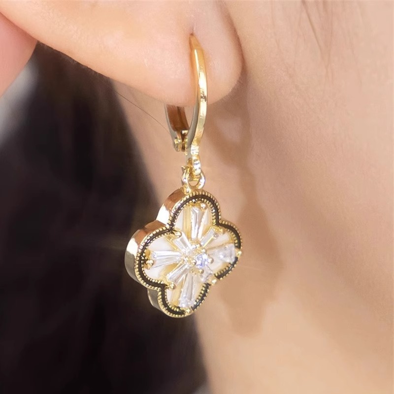 彤彤兔 镶钻四叶花耳扣耳环女爆款轻奢高级感纯银耳钉防过敏耳坠