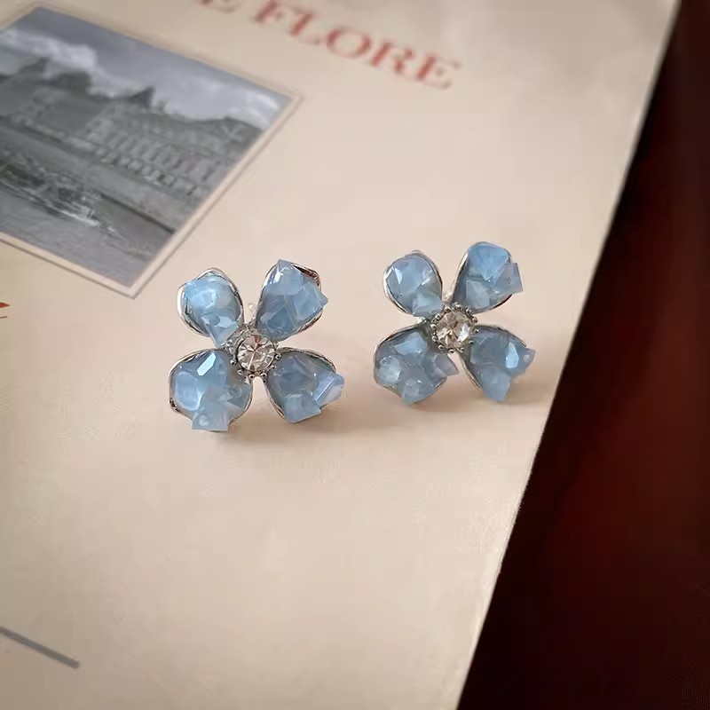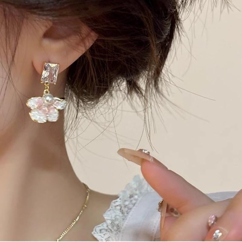 彤彤兔 S925银针水晶花朵耳环女爆款轻奢小众高级感耳钉森系耳饰