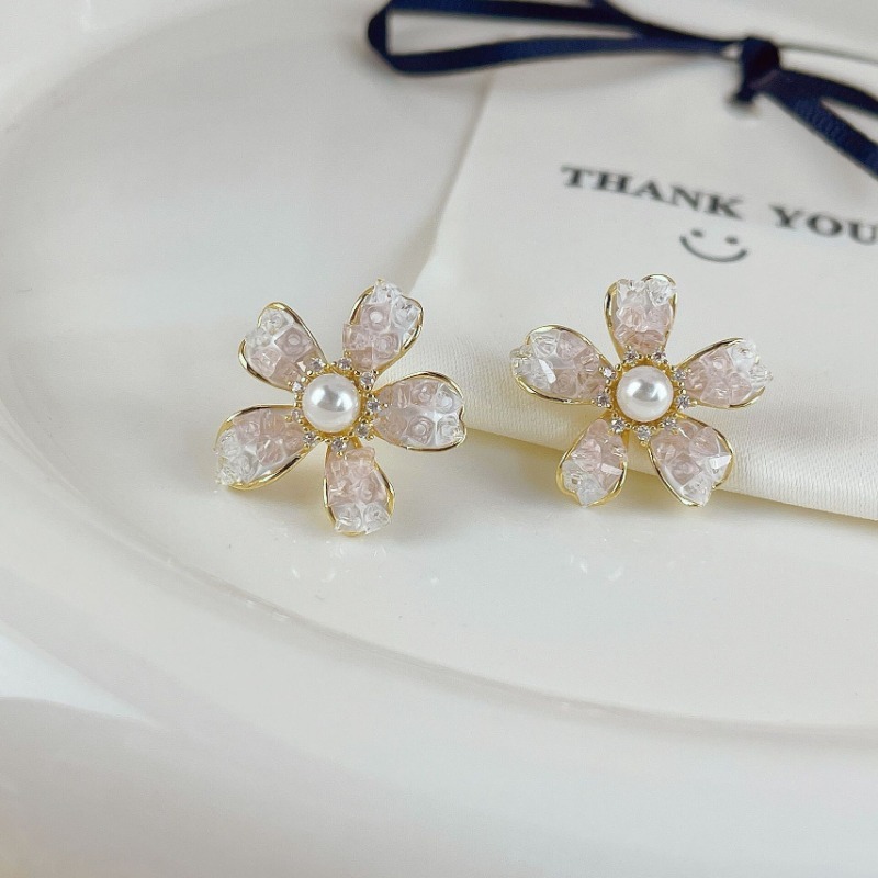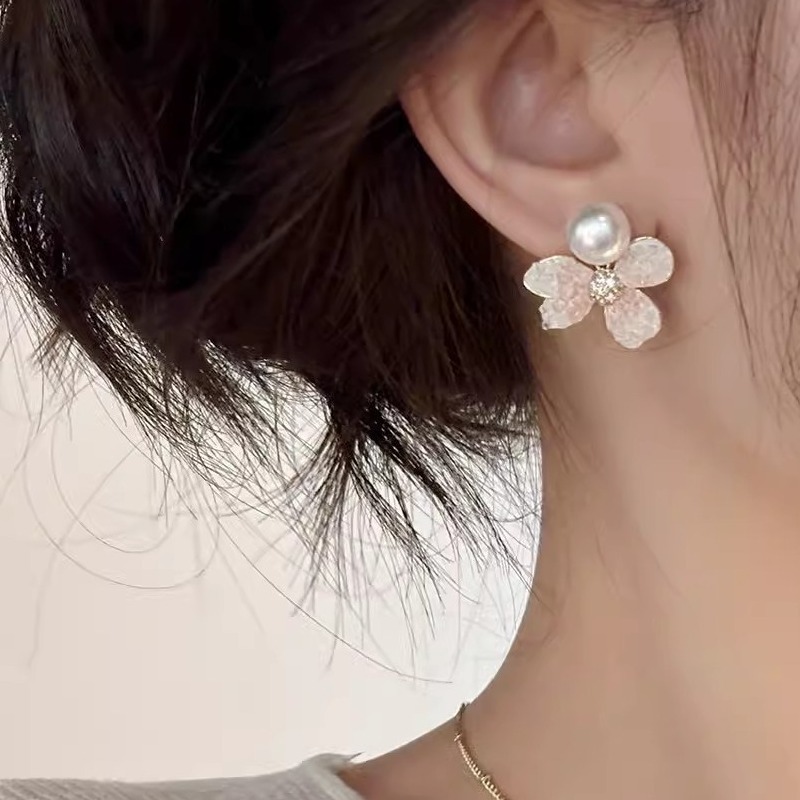 彤彤兔 S925银针水晶珍珠花朵耳环小清新甜美精致耳钉超仙气质高级感耳饰