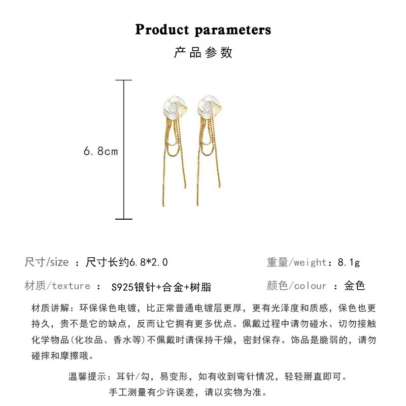 彤彤兔 S925银针百搭山茶花流苏耳环小众设计感长款显瘦耳饰气质优雅耳钉