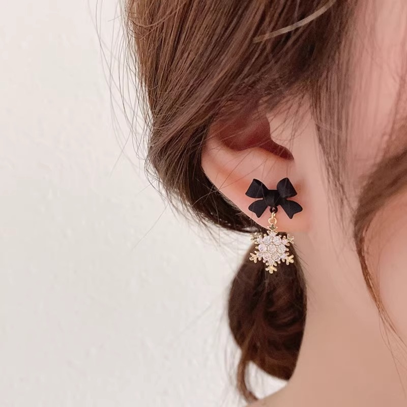 彤彤兔 S925银针蝴蝶结雪花耳环耳饰法式气质网红小众设计感耳饰