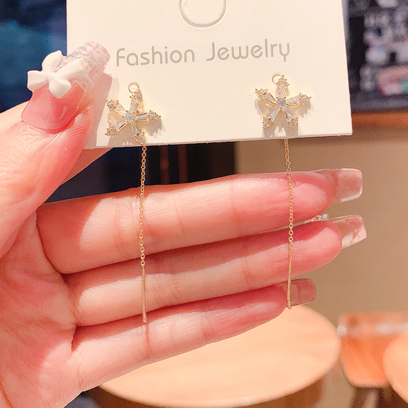 彤彤兔 S925银针镶钻花朵流苏耳线气质高级感轻奢简约精致养耳洞耳饰