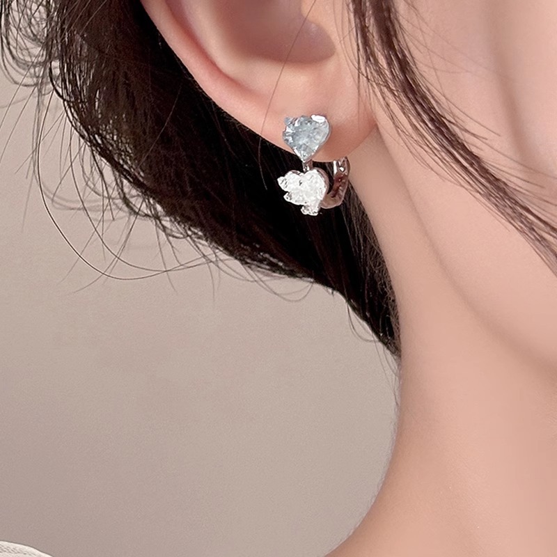 彤彤兔 S925银针拼色水晶爱心C形设计耳钉耳环轻奢甜美气质双色百搭耳饰
