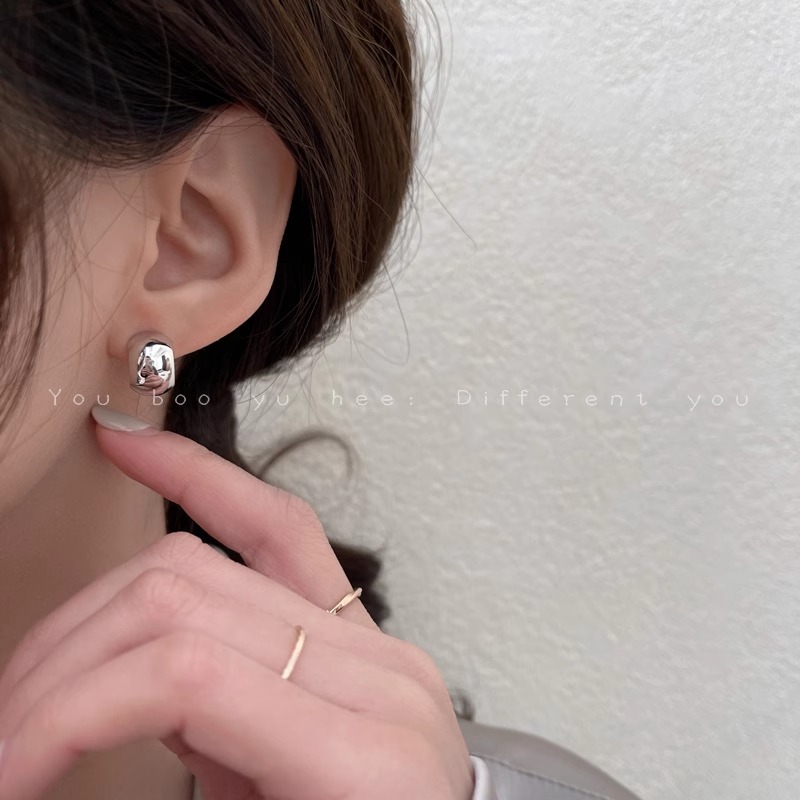 彤彤兔 S925银针法式金属圆圈耳饰潮耳钉小众设计感独特气质耳环