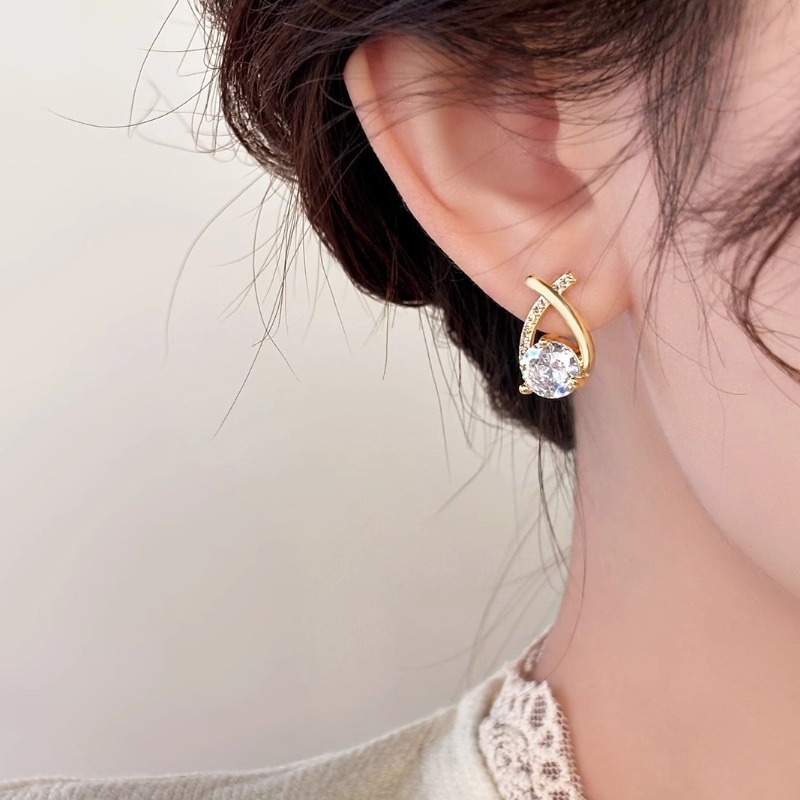 彤彤兔 S925银针简约交叉金色水钻耳钉女小众设计耳钉耳饰