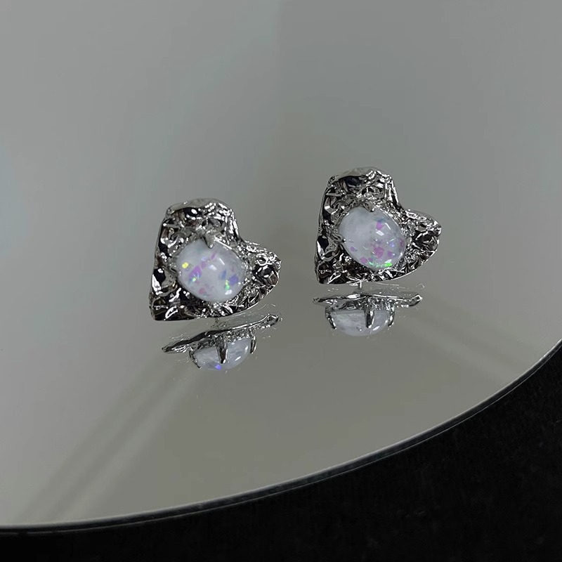 彤彤兔 冷淡风金属拉丝爱心耳钉女新款耳环女轻奢高级感心 形耳饰