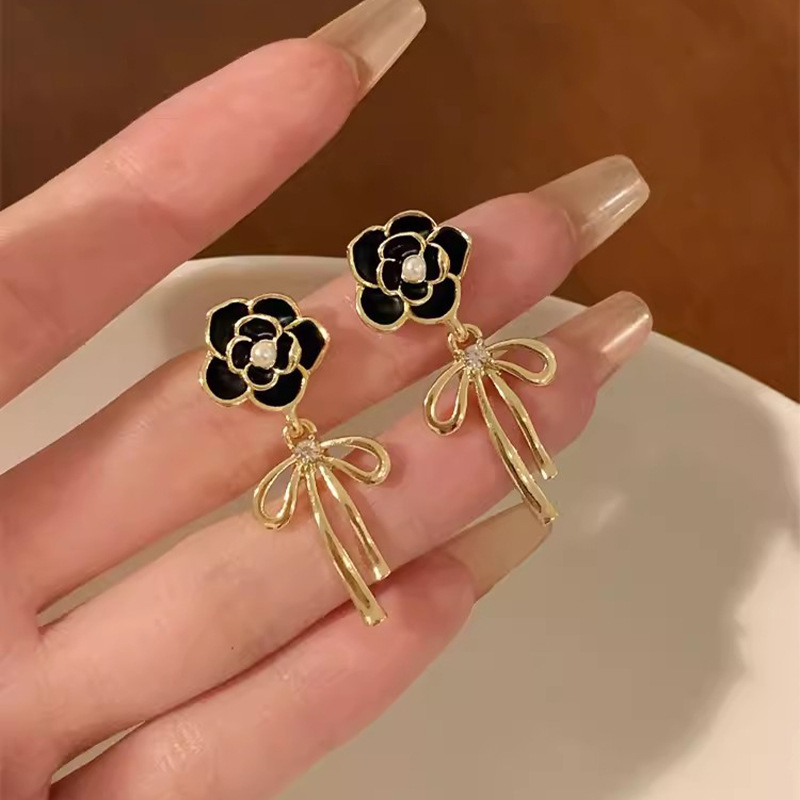 彤彤兔 S925银针山茶花蝴蝶结耳环女小众设计感轻奢气质高级名媛耳钉