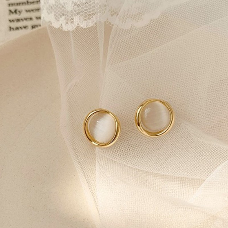 彤彤兔 S925银针韩版2猫眼石耳钉韩国网红气质迷你小巧耳环女耳饰