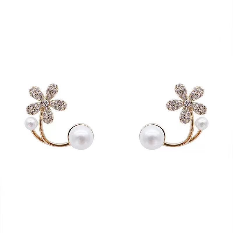 彤彤兔 S925银针小众设计花朵珍珠耳钉女新款潮耳环高级感女轻奢耳饰