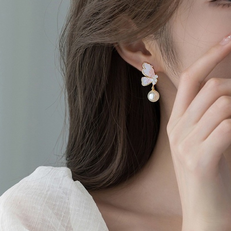 彤彤兔 S925银针蝴蝶珍珠耳饰女小众设计感高级耳钉独特耳环爆款