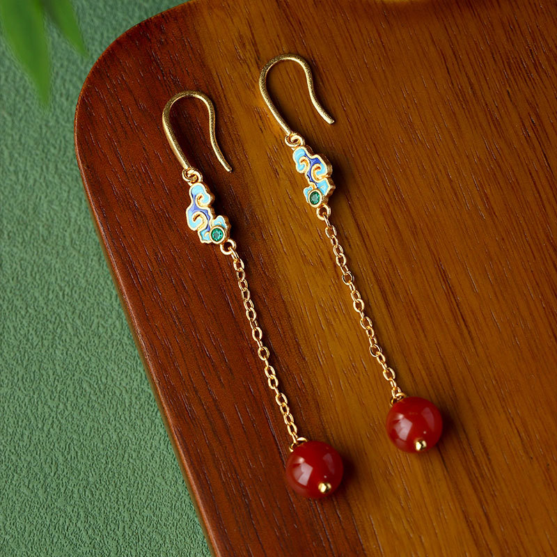 彤彤兔 古风珐琅祥云彩绘合成玉石长款耳饰高级感耳环