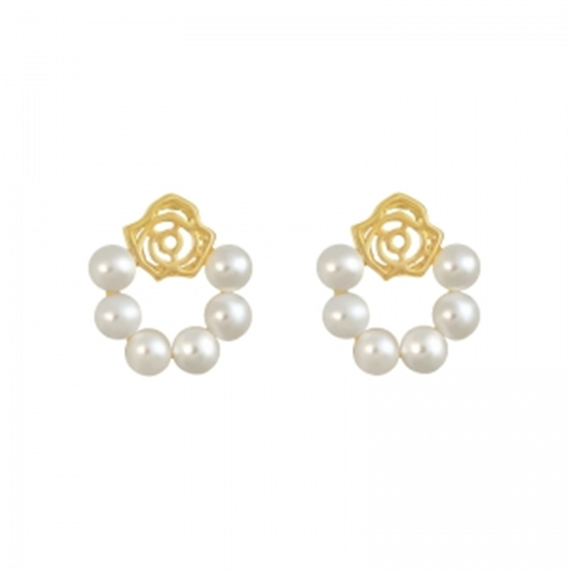 饰瑾美(SHIJINMEI)花朵交叉淡水珍珠耳钉 金色